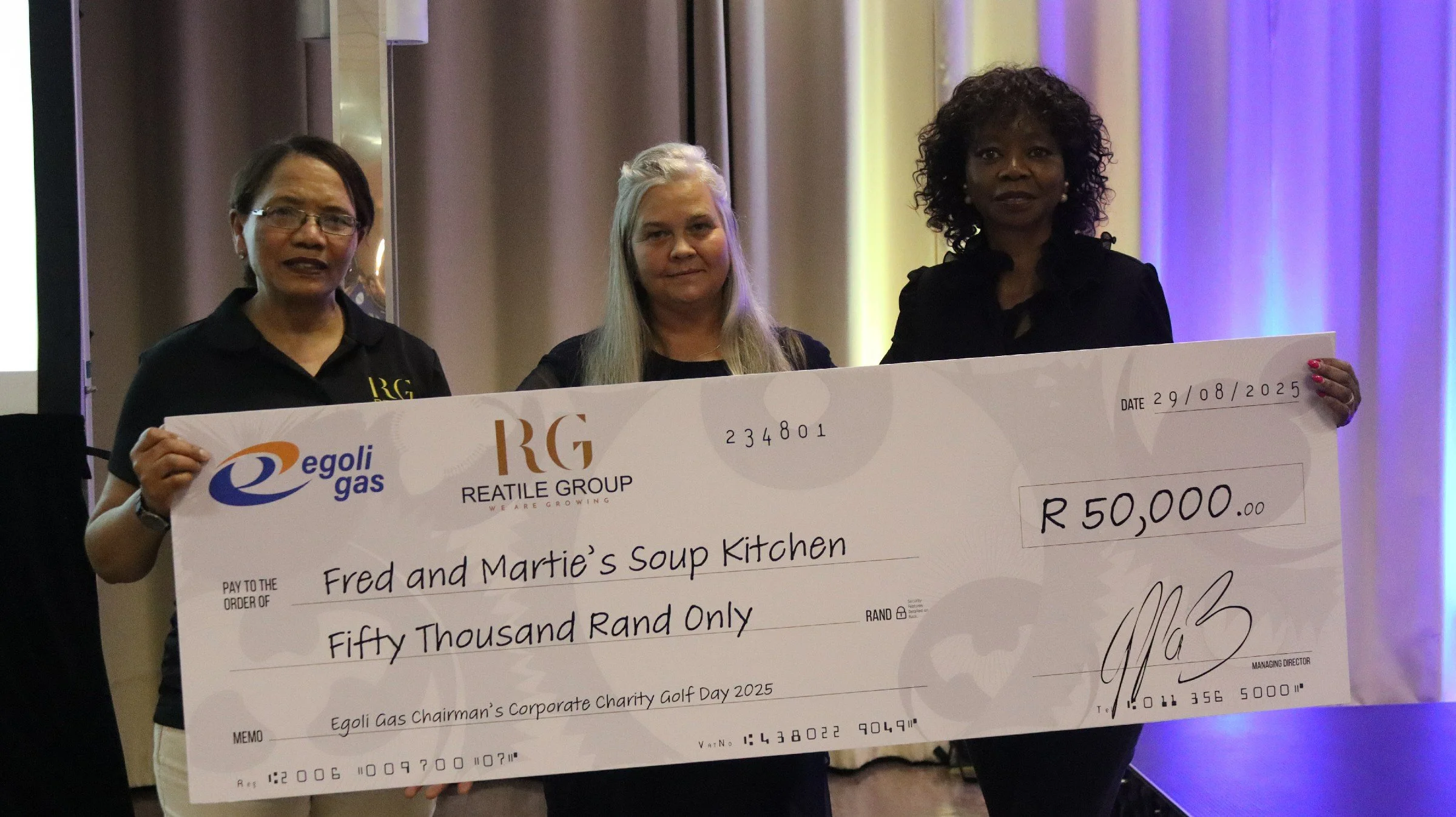 In a powerful show of support, the Reatile Group matched this amount with an additional R200,000.00, resulting in a total of R400,000.00 being donated to four nominated charities: